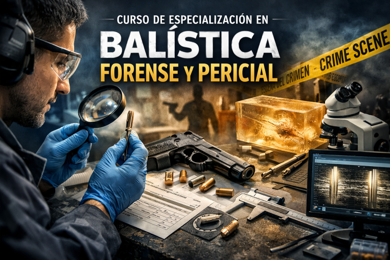 Curso de especialización en balística forense y pericial, centrado en el estudio de armas de fuego, municiones y trayectorias, el análisis de indicios balísticos, la interpretación técnica de resultados y su correcta aplicación en el ámbito pericial y judicial.